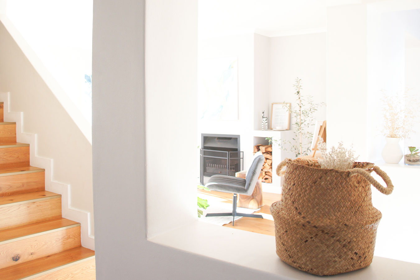 This house has been transformed into an open-plan space with so much natural light. It epitomises ‘calm, cosy and fresh’ – referencing both the seaside and the countryside. It boasts a real sense of calm with its pared-down palette, mix of wood finishes, natural textures and soft, nautical shades. This style puts particular emphasis on natural materials and less-than-perfect shapes – a country house to unwind and relax in. It reflects simplicity – keeping things neat and simple. The open spaces symbolise inclusivity for anyone visiting and enjoying the vineyard views.